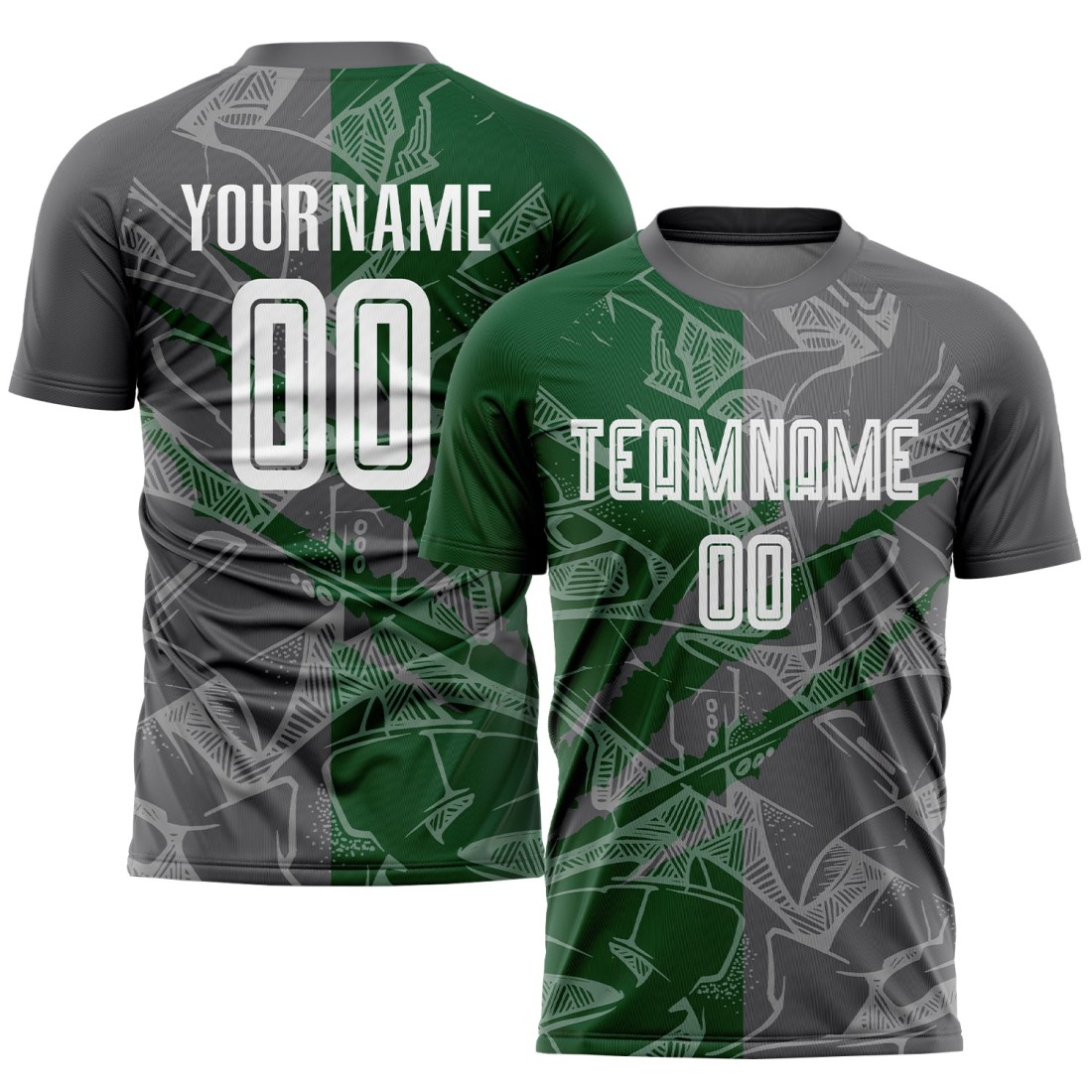 Benutzerdefinierte Graffiti Muster Mitternacht Grün-Stahl Grau Scratch Sublimation Fußball Uniform Jersey