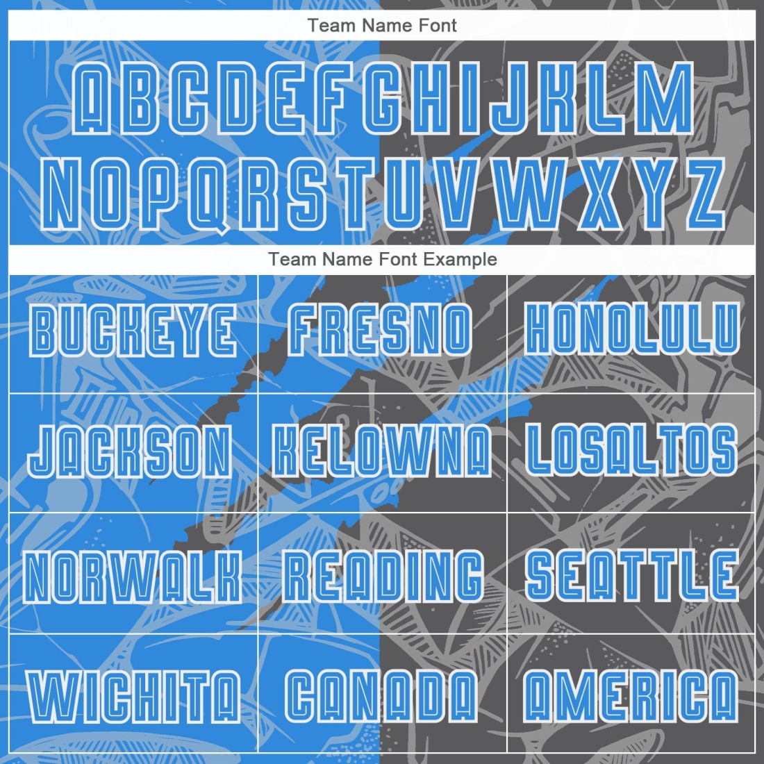 Benutzerdefinierte Graffiti Muster Hellblau-Stahlgrau Scratch Sublimation Fußball Uniform Jersey